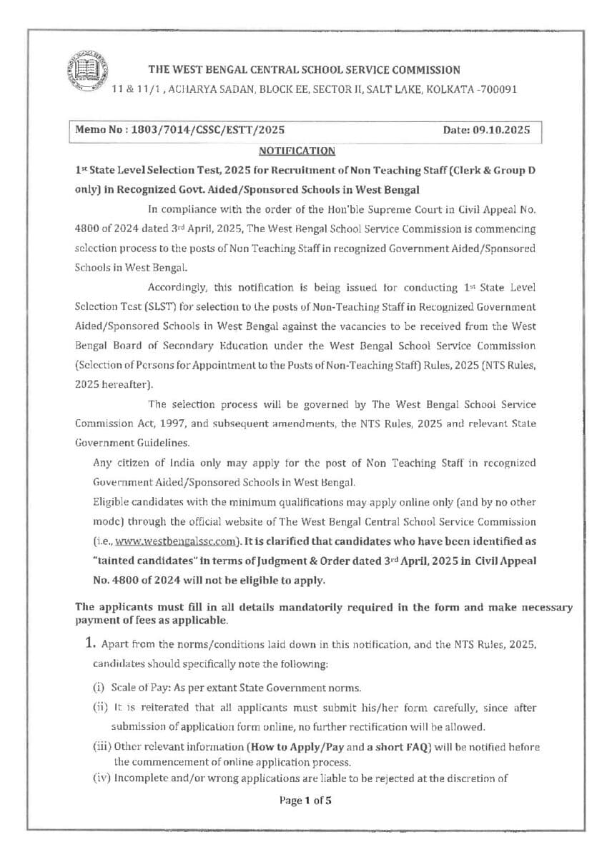 | Minimum Age: 18 Years. Maximum Age: 40 Years.For more complete information, please read the WBSSC Group C, D Notification 2025. | 8477 Posts For more complete information, please read the WBSSC Group C, D Notification. |